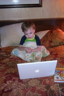 "Roughin' it" with the laptop. Rocco loves his Curious George DVD!View from our porch